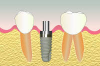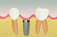 インプラントとは、歯の喪失した部分の歯槽骨(顎の骨)に人工の歯根を埋入し、3~6ヵ月後にクラウンを被せるものです。